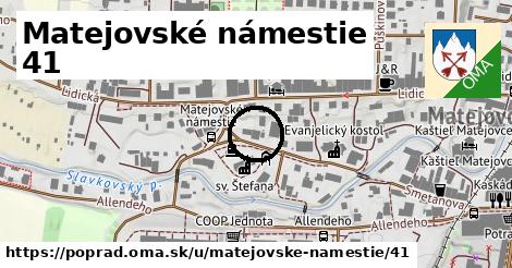 stiahni GPX, cislo: 41, streetnumber: 1523 41, ulica: Matejovské námestie, ulica asci: matejovske namestie, postcode: 059 51, city: Poprad, Matejovce, oblast asci: poprad, lon: 20.322943822138804, lat: 49.081276231330655,
